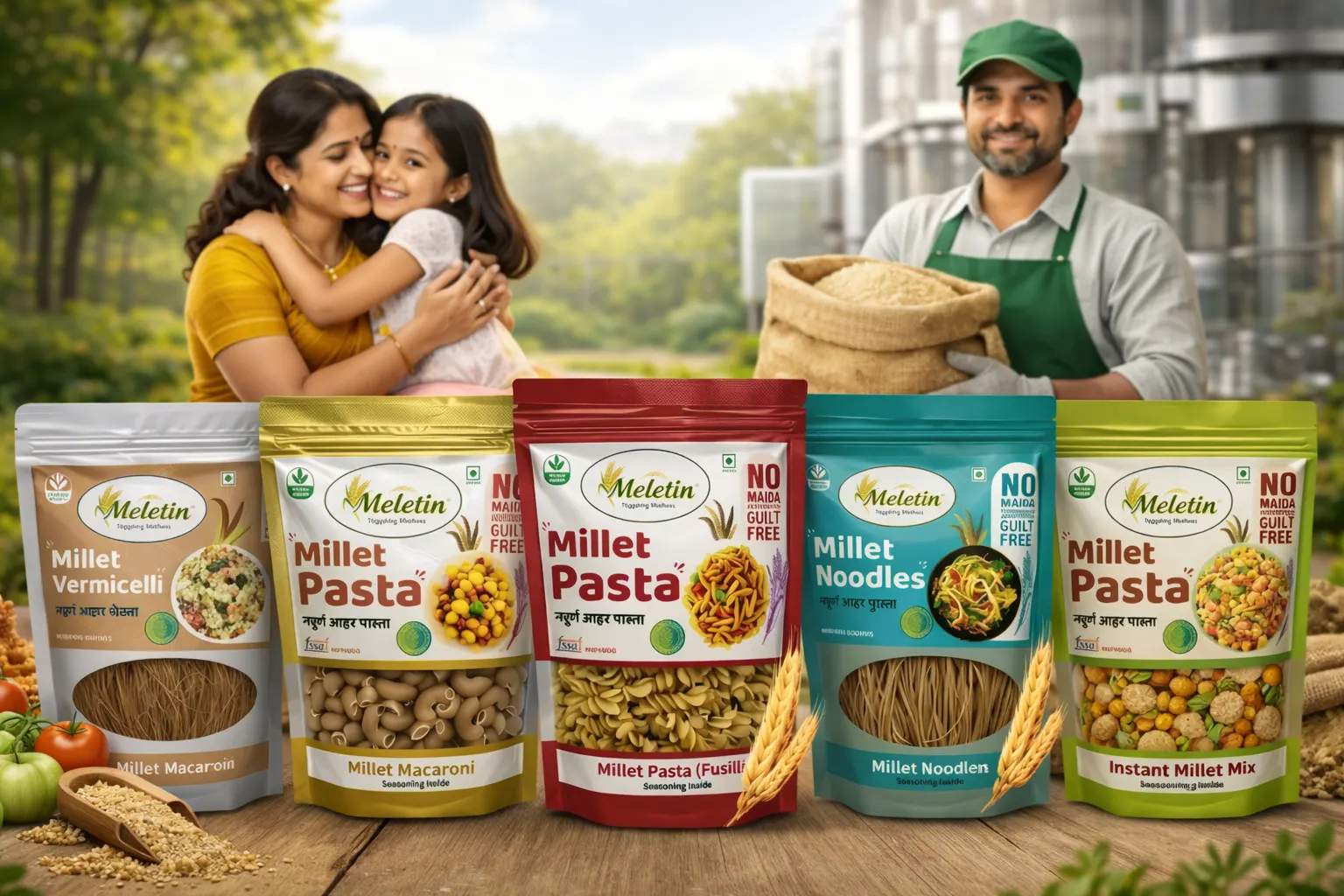 MELETIN is a trusted wholesaler and distributor of millet-based products, supplying nutritious flours, pasta, noodles, and ready mixes made from premium Indian millets. Inspired by the care of parenting, we deliver natural, high-quality foods that families trust and businesses rely on — across India and beyond.